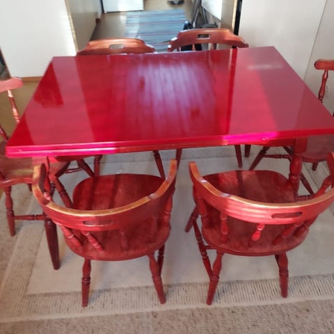 Hyvässä kunnossa oleva antiikkinen ruokailuryhmä. Mitat tulossa. Pöytä jatkettava. Kaikki yhteensä 180e tai pöytä erikseen 60e ja tuolit 40e/kpl.