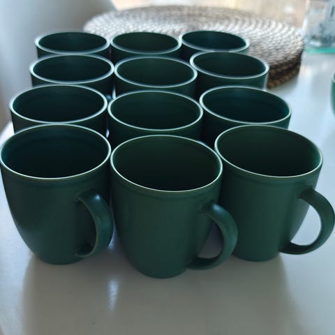 Kaj Frankin suunnitelemat kupit. Väri vihreä. Halkaisija 8 cm/korkeus 6 cm. Vetoisuus 1,5 desiä. Hinta yhteensä