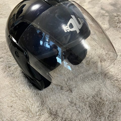 Hyväkuntoinen avokypärä visiirillä. Muutama naarmu tullut säilytyksessä. Käytetty kaksi kertaa.