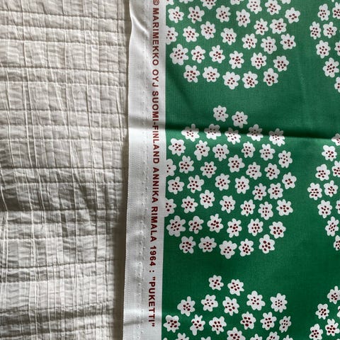 Ohuehko kangas, josta saa ommeltua kuusi huivia. Ei eläimiä taloudessa.