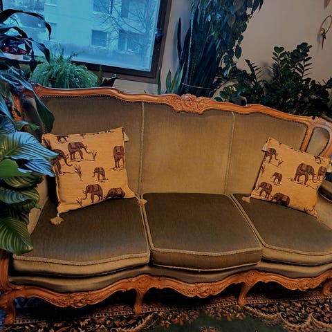 Myydään Kruunukalusteen vihreä rokokoo-mallinen samettinen plyysikangaskalusto pöytineen. Tuolien ja sohvan ja pöydän kaiverrukset ovat kauniit yksityiskohtineen. Myös napitukset ovat kaikki hienosti kohdillaan. Sohvan mitat: 175x85x70cm. Tuolien mitat: 90x70x65cm. Pöydän mitat: 95x-60x55cm. Ollut muutaman vuoden vähäisellä käytöllä ja sitä ennen joitakin vuosia vain edustus käytössä. Vain nouto Helsingistä.