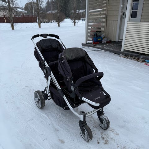 Beemon sisarusrattaat. Sisältyy kaksi istuin osaa ja yksi vaunuosa sekä sadesuojan saa mukaan. Säilytetty lämpöisessä aina. Kuvissa näkyy viat. Vaunun patja osaa ei ole kokeliltu puhdistaa, on puklu jäljet. Rattaat saa kasaan helposti kun on istuin osat, mutta ei vaunuosan kanssa. Vaunu osaa ei myöskään saa pois vauvan oleessa kopassa