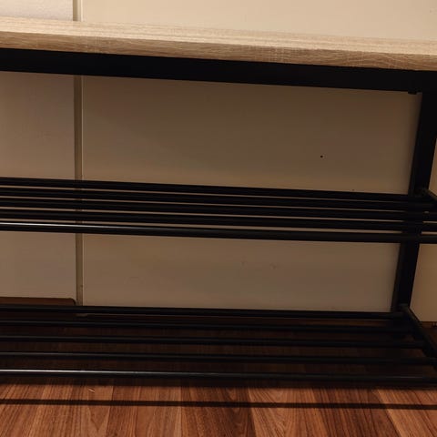 Siistissä kunnossa olevat naulakko ja kenkäteline. Mitat kuvissa.