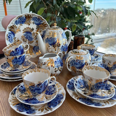 Lomonosov LFZ teeastiasto Kultainen puutarha posliini USSR