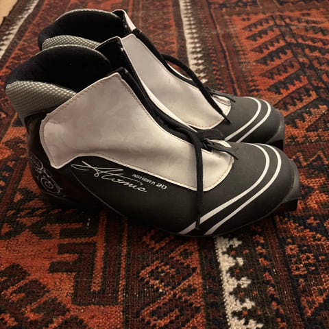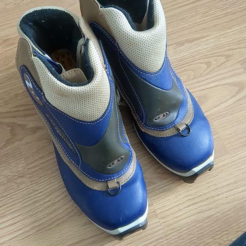 Salomon monot koko EU 40 (UK 6,5 / US 8 / 25,5 cm). Kengät ovat mustat sinisillä yksityiskohdilla ja niissä on korkea varsi sekä nauhakiinnitys. Sisäpuolella on pehmustettu vuori. Sns-siteille sopivat. Siistissä kunnossa.