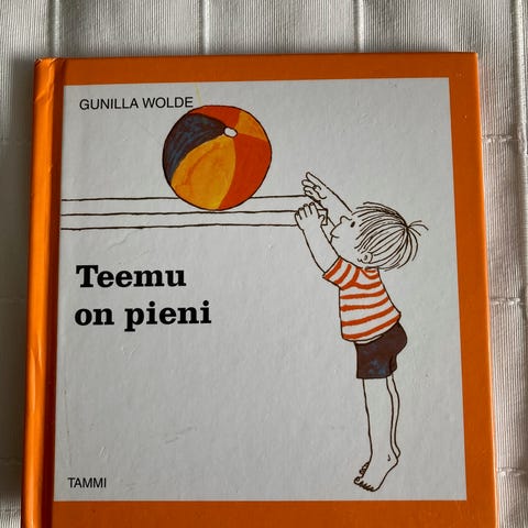Gunilla Wolden Teemu -sarjan kirja, ostettu kirjaston poistomyynnistä, kunto ok eli sivut ehjät, siistit ja hyvin kiinni.