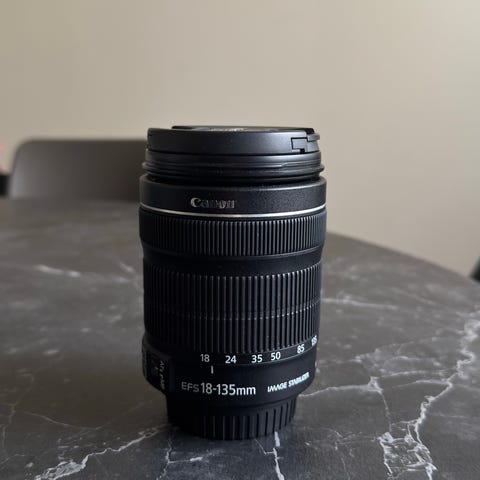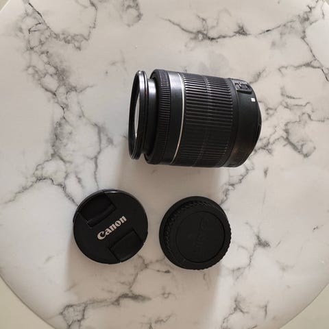 Canon EF-S 18-55mm ja Canon EF-S 18-135mm zoom-objektiivit. Molemmat objektiivit ovat mustia ja niissä on zoom-alueet 18–55 mm ja 18–135 mm. Objektiivit sopivat Canonin EF-S-kiinnitystä käyttäviin digijärjestelmäkameroihin. Niissä on tarkennusvalitsin AF/MF ja rungossa polttovälimerkinnät. Käyttö monipuoliseen kuvaamiseen, kuten maisema-, arki- ja matkakuvaukseen eri polttoväleillä.