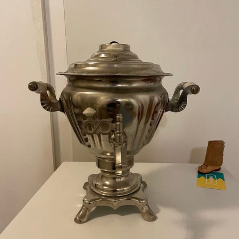 Tula-samovaari ja kaksi lasia. Tilavuus 3 litraa. Sähköinen. Erinomaisessa toiminta- ja visuaalisessa kunnossa. Ei koskaan käytetty. Tori-diili, postitus (PK ostojalle) tai nouto Valkeakoskelta.