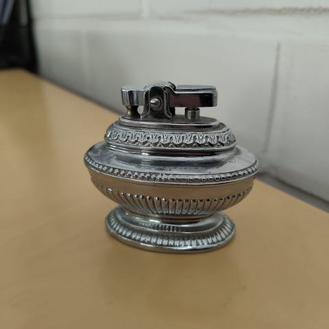 Toimivassa kunnossa oleva vintage pöytätupakansytytin.
