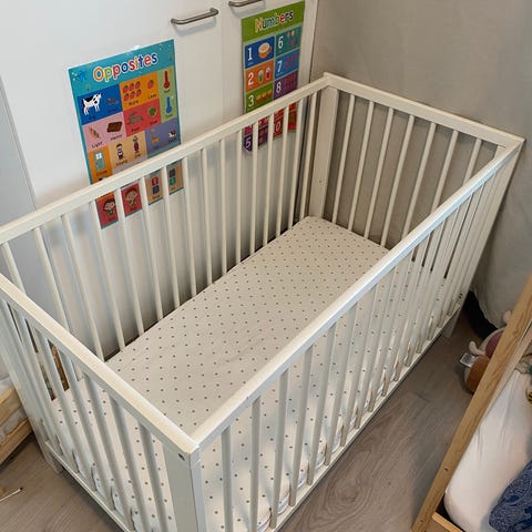 Mukaan saa myös patjan ja petauspatjan, jotka molemmat ovat siistissä kunnossa.