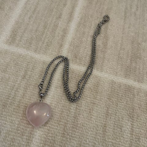 Ruusukvartsi kivi on 1 cm leveä ja korussa ei ole leimoja, niin se on korumetallia. Kaulakorun pituus 35 cm.