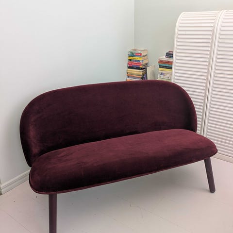 Hyvä käytetty kunto. Verhoilu siisti ja runko tukeva. Normaalia pientä käytönjälkeä.