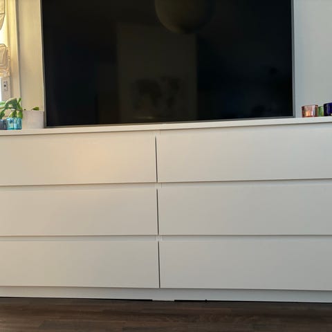 Ikean Malm Lipasto 3+3 Laatikon malli. Yksi osa lähtenyt, kuten kuvassa näkyy, joku näppärä osaisi ehkä korjata. Kulumat huomioitu hinnassa.