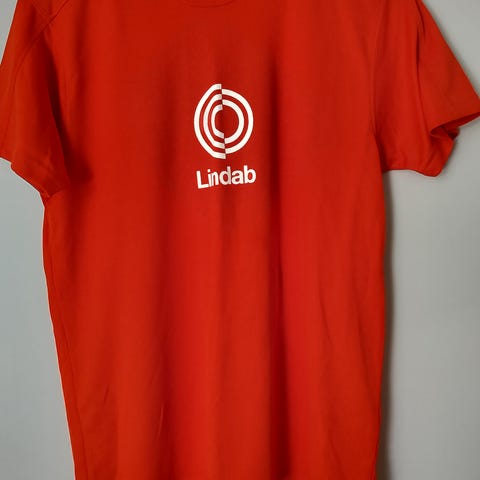Käyttämätön lyhythihainen, oranssi pusero, heijastimilla.