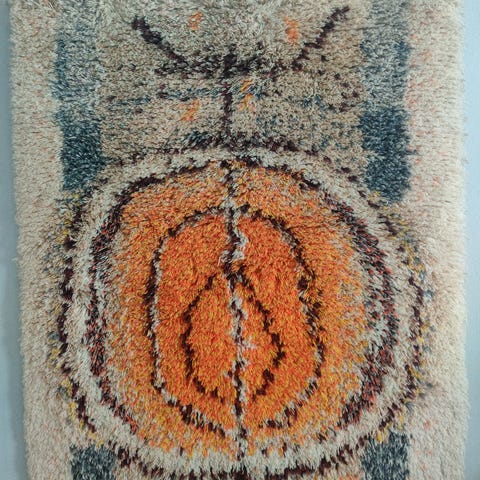 Koko 145x90. Eripituista nukkaa. Vuosien saatossa pesty pari kertaa varovasti käsin. Jos postitus, niin voi taitella isohkoon pahvilaatikkoon ja tällöin postituksen hinta ehkä 15 euroa.