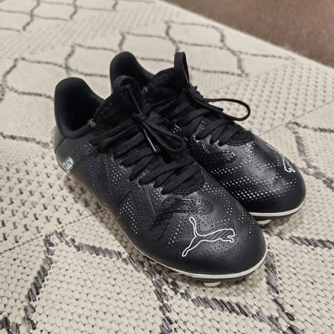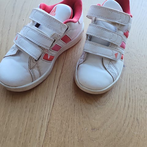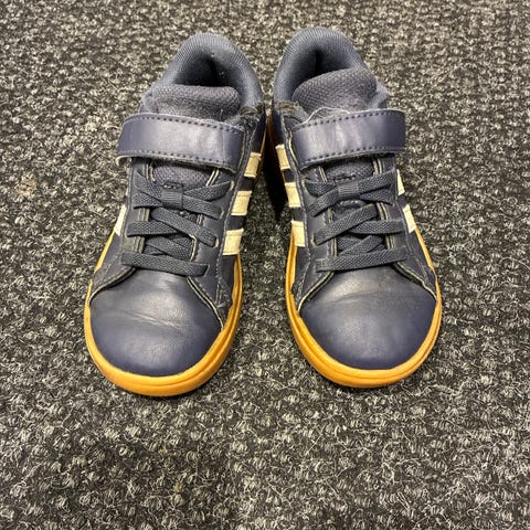 Adidas lasten jalkapallokengät, koko 28. Nauhakiinnitys. Pohjassa nappulakuviointi, joka soveltuu erityisesti tekonurmelle tai kovalle alustalle. Kengät ovat unisex-mallia. Pohjallisen pituus näkyy mitattuna kuvassa, noin 17 cm.