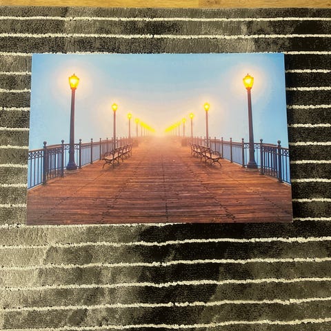 Värillinen leveys 84cm ja korkeus 62cm, mustavalkoinen leveys 78cm ja korkeus 61cm.