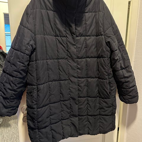 Luhta ulkoiluasu naisille, koko 44. Musta takki ja housut samassa setissä. Takissa on irrotettava tai säädettävä huppu, jossa tekoturkisreunus, sekä koristeompeleita ja -kuvioita. Edessä vetoketju ja painonapit sekä useita vetoketjutaskuja. Hihansuissa on sisemmät resorimaiset suojat tuulta vastaan. Housuissa on suora lahje sisäsuojalla ja vetoketjulla, vyötäröllä vyölenkit ja taskut edessä. Materiaali on sileää ulkoilukangasta, joka soveltuu yleiseen ulkoiluun ja talvikeleihin kerrospukeutumisen kanssa.