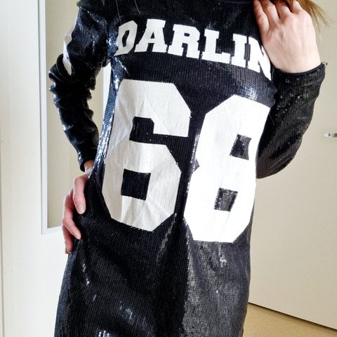 Esmaran paljettimekko/tunika. Koko M. Mekko on hopeanvärinen ja kauttaaltaan paljeteilla koristeltu. Mallissa on yksinkertainen, suora leikkaus ja puolipitkät hihat. Mitta kainalosta helmaan n. 62cm.