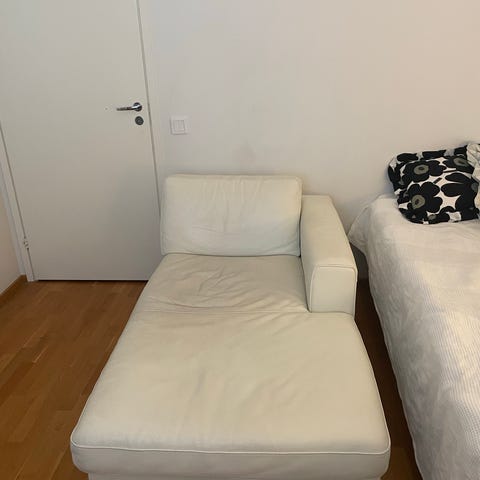 Varattu, Valkoinen keinonahkainen sohva