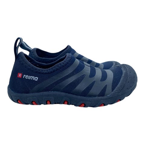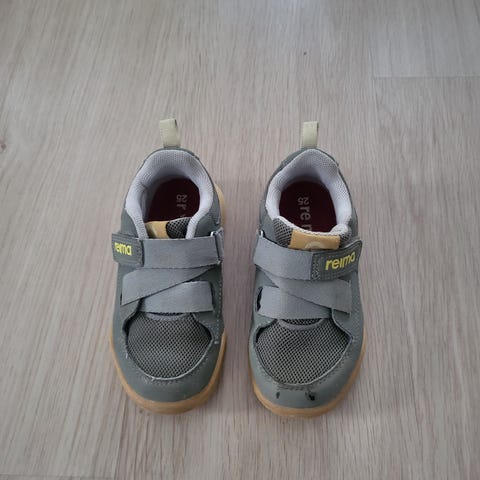 Reima Kiirus tarralenkkarit. Koko 25, valmistajan ilmoittama sisämitta 16,7 cm. Täältä ostettu erittäin hyväkuntoisina ja meillä ehti vain muutaman kerran käyttöön. Erittäin siistit, myös pohjalliset. Ehjät, pientä likaa pohjissa ja verkkokankaassa varpaiden päällä. Huom! Jostain syystä toisessa kengässä tarran vastakappale erilainen kuin toisessa. Mahdollisesti olleet samplet tai tarra vaihdettu, edellinen myyjä ei tästä maininnut mitään. Molemmat tarrat pitävät, mutta tämä toinen vähän huonommin.