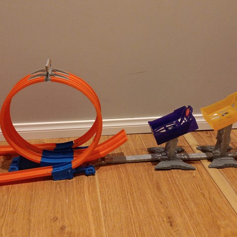 Ehjä ja toimiva rata. Alkuperäinen auto on kadonnut, mutta toki tämä toimii millä tahansa hot wheels -autolla. Vain nouto!