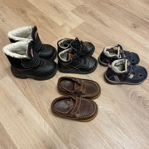 Sandaalit koko 23, mocca lenkkarit koko 23, talvi bootsit koko 24, prinsessa kengät koko 26, tennarit koko 24, sisätossut koko 22/23. Hp. 10 kaikki.