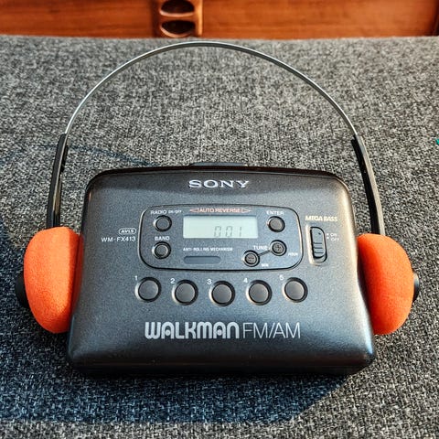 Upeat oranssit retrokuulokkeet (Walkman, tms kanssa)