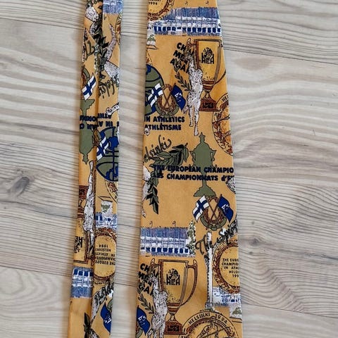 Myydään hyväkuntoinen vanhempi Suomen palloliitto / SPL solmio. Solmiossa teksti SJL / FBF ja palloliiton logo. Materiaali todennäköisesti polyesteriä. Väri sininen.