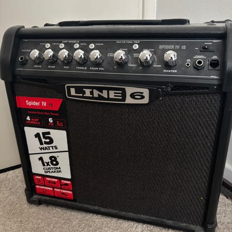 Basso ja vahvistin, mukaan basson teline, viritin ja piuha. Nouto Hämeenlinnasta