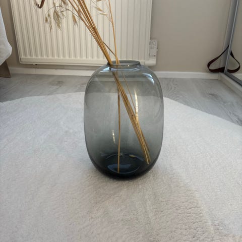 H&M Home lasimaljakko, vaaleanvihreä. Maljakossa on pystysuuntainen uurrettu pinta ja pyöristetty muoto. Sopii esimerkiksi leikkokukille tai sisustuselementiksi pöydälle tai tasolle. Materiaali lasia.