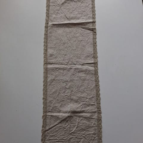 Kangas on valkaistua puuvilla pellavaa. Melko ohutta.
