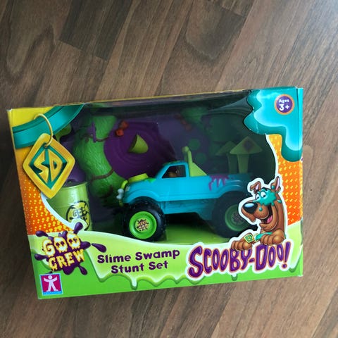 Scooby-Doo -aiheinen lelu, jossa on violetti kotelo ja sisällä hirviöfiguuri. Kotelon kannessa on Scooby-Doo -kuvitus ja sisäpuolella sarjakuvamaisia kuvia. Sopii leikkeihin ja kokoelmaksi Scooby-Doo -teemaisista leluista pitäville.