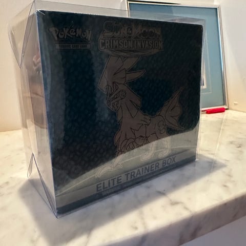 Minttikunnossa oleva Sun & Moon Base set Elite trainer box, PVC-Muovi kaupan päälle.