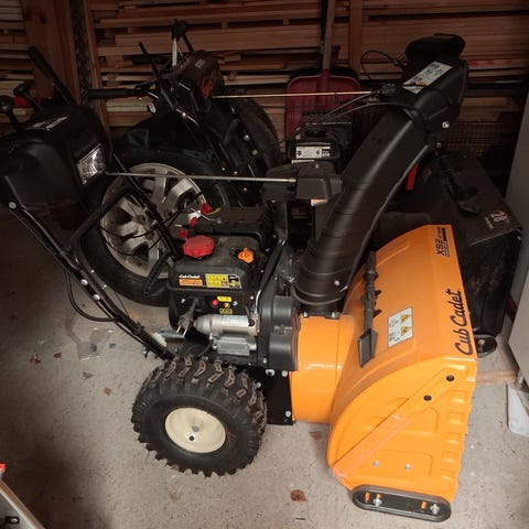 Stiga 523. Toimiva lumilinko. Pariin vuoteen ei ole käytetty mutta kolmannella vetäsyllä lähti käyntiin.