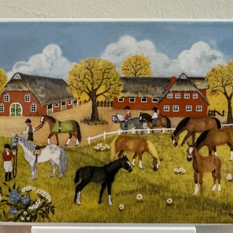 Myydään näyttävä ja hyväkuntoinen keraaminen laatta/pannunalunen, valmistaja saksalainen Villeroy & Boch Mettlach.