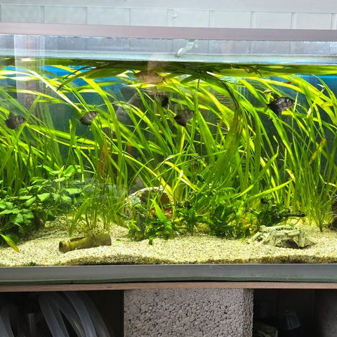 Akvaario, jossa on suuri lasiallas ja alumiinikehikko. Altaan päällä kulkee kasvikouru, jossa voidaan kasvattaa huonekasveja tai vesikasveja. Akvaarion sivulla on erillinen äänieristetty kaappi, johon on sijoitettu suodattimet. Kokonaisuus soveltuu kalojen ja vesikasvien pitoon sekä yhdistettäväksi kasvien kasvatukseen samassa järjestelmässä. Suodatinteho vesimäärään suhteutettuna on kaksinkertainen. Helppohoitoinen kokonaisuus. Vesimassa n. 1150l. Kehikon alla metallilaatat, jotka jakavat painon lattialla. Ei jää jälkiä lattiaan.