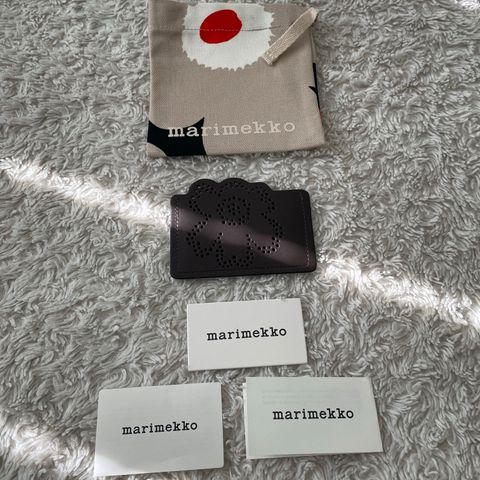 Uusi, käyttämätön Marimekon Unikko korttikotelo. Pituus 10.5 cm, leveys 0.5 cm, korkeus 8 cm. Väriltään kauniin tummanruskea. Kuvassa näkyvä Marimekon pussukka tulee mukaan. Loppuunmyyty väri. Tuotenumero: M4K51F01G-011