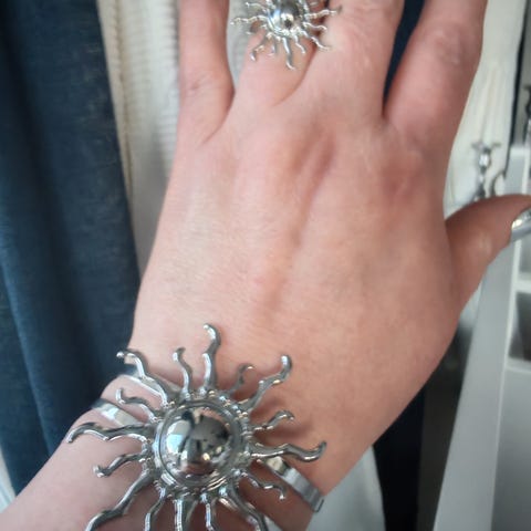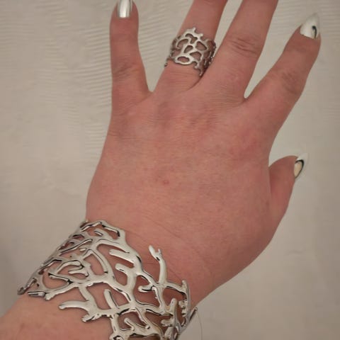 Näyttävä, säädettävä rannekoru kestävää materiaalia. Ostettu ulkomailta, ei käytetty.