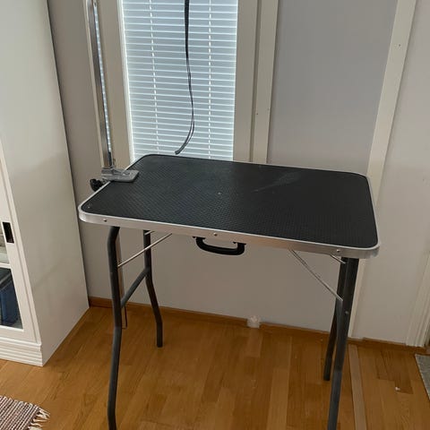 92cm x 61cm vankka trimmipöytä, jonka korkeus säädeltävissä. Irroitettava kaulanaruteline. Kantokahva pöydän sivussa.