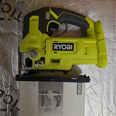 Käyttämätön Ryobi merkkinen kannettavan viistosahan jalusta. Ei siis sisällä sahaa.