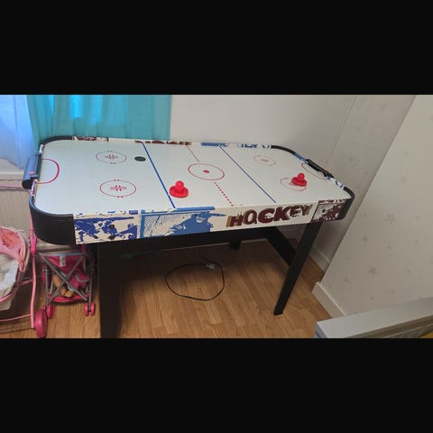 Myydään all-star ice hockey merkkinen pöytälätkä peli. Kolme joukkuetta,kaksi kiekkoa. Toimiva peli,ainoat viat ovat yhdestä jalasta puuttuu kumitassu(ei vaikuta pelaamiseen) sekä maaleissa osa kiinnikkeistä mennyt rikki(pysyvät silti paikoillaan näinkin). Vain nouto ja tasaraha käteisenä 5e,ensimmäiselle hakijalle.