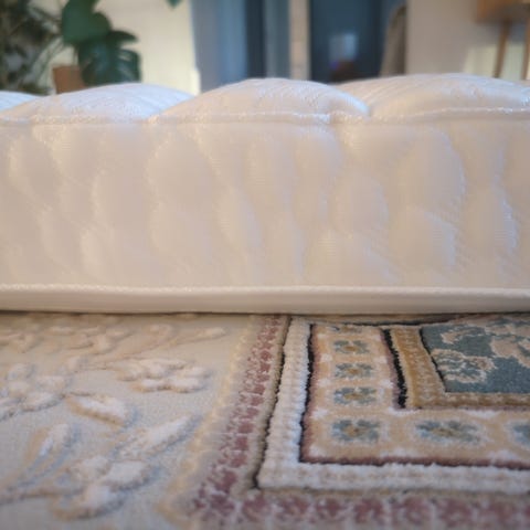 Ostin sijauspatjan Jyskistä marraskuun lopussa alennuksesta ja se on ollut käytössä pari kuukautta, ei jälkiä tahroja yms koska meillä käytössä patjansuojus. Minulla on antaa kuitti ostotapahtumasta. Patja myynnissä koska ei käynyt minun tai puolison kummankaan selälle hyvin, meillä molemmilla ongelmia selän kanssa.