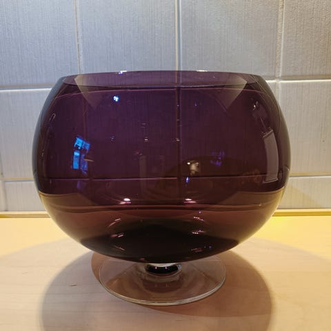 Sowerby Glassin valmistama tumman turkoosi taidelasimalja 1950- tai 1960-luvulta.