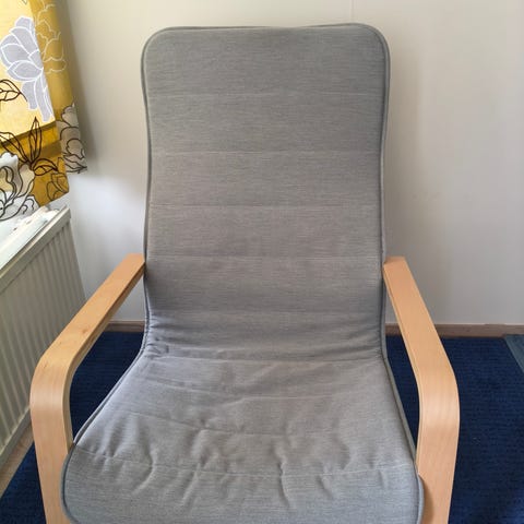 Ikean nojatuoli valkoisilla päällysillä. Halutessaan saatavana meiltä myös tummanharmaa päällinen.