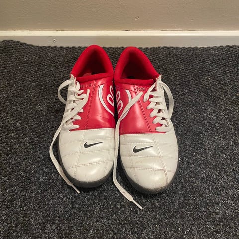 Nike Air Force 1 Mid miesten tennarit, koko 42.5. Väri valkoinen. Korkea varsi tarrakiinnityksellä ja nauhoituksella. Rei’itetty päällinen hengittävyyden parantamiseksi. Sopivat arkikäyttöön ja vapaa-aikaan. Toisen kengän pohjallisessa pieni epätasaisuus (ollut alusta asti), ei ole haitannut käyttöä.