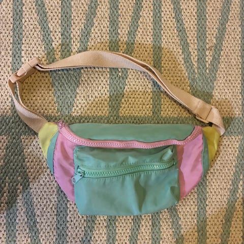 Kaksi vyölaukkua. Tummansininen vyölaukku, jossa säädettävä musta vyö ja vetoketjutasku edessä. Vaaleansininen, suorakaiteen muotoinen vyölaukku, jossa säädettävä harmaa vyö ja useampi vetoketjullinen lokero. Molemmat laukut sopivat pienten tavaroiden, kuten puhelimen, avainten ja lompakon kuljettamiseen vyötäröllä tai olalla.