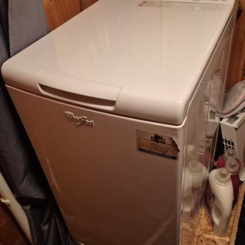 Whirlpool 7 kg päältä täytettävä pesukone. Useita vuosia käytössä ollut, toimiva pesukone. Vasta puhdistettu. Myydään muuton vuoksi. Vain nouto.