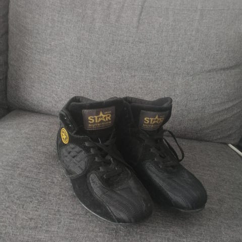 Treeni-/juoksukengät salitreeniin. Kengät ovat mustat harmailla yksityiskohdilla. Koko 42.5. Sopivat sisäliikuntaan ja muuhun kevyeseen urheiluun. Nauhakiinnitys ja kumipohja antavat peruspidon liikkumiseen.
