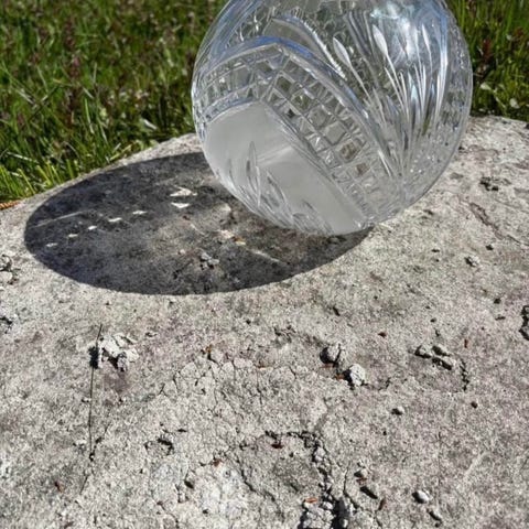 Hyväkuntoiset cooleri, kristallimaljakko ja kristallikulho, korkea kynttilänjalka, lasiruusu ja iso malja esim. kynttilälle. Yhteishintaan 25e.